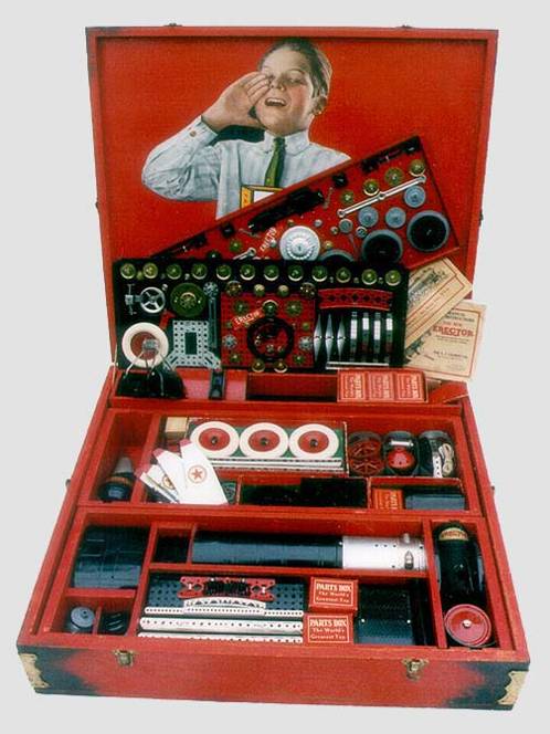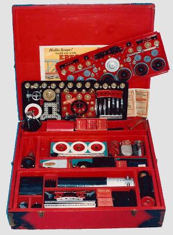 Early Style Lid Design. The Set Shown Above (from my private collection) is the Version Illustrated in the 1931 Erector Catalog. Advertised as TheClimax of Erector Glory, it is the Only Example of This Rare Set Known To Exist.