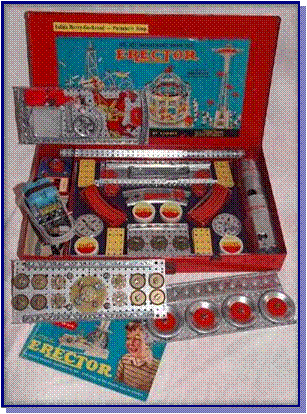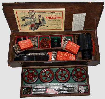 Contains Reversing Electric Engine (P-51) and battery Motor (P-58). Builds the Giant 4-ft Locomotive and Tender and all other Erector models. Two How-To-Make-‘Em books. Packed in Powder blue box with crackle finish…$4,850.00