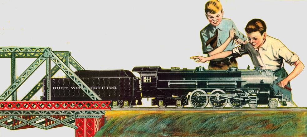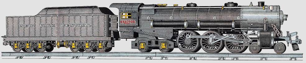 4-foot reproduction of the New York Central’s crack flyer, the locomotive of the 20th Century Limited. Built entirely with Erector. And you can build hundreds of other realistic models, too.